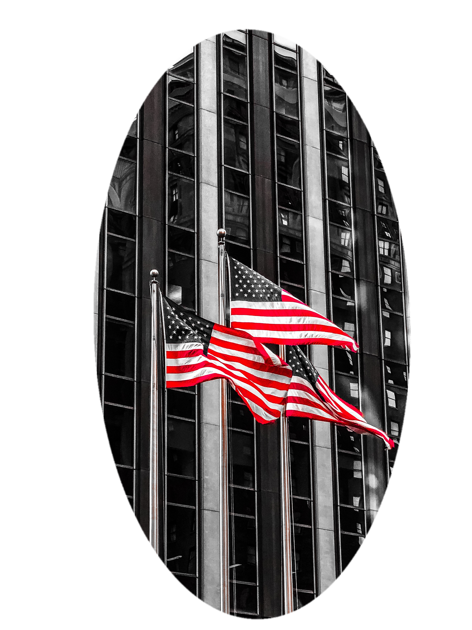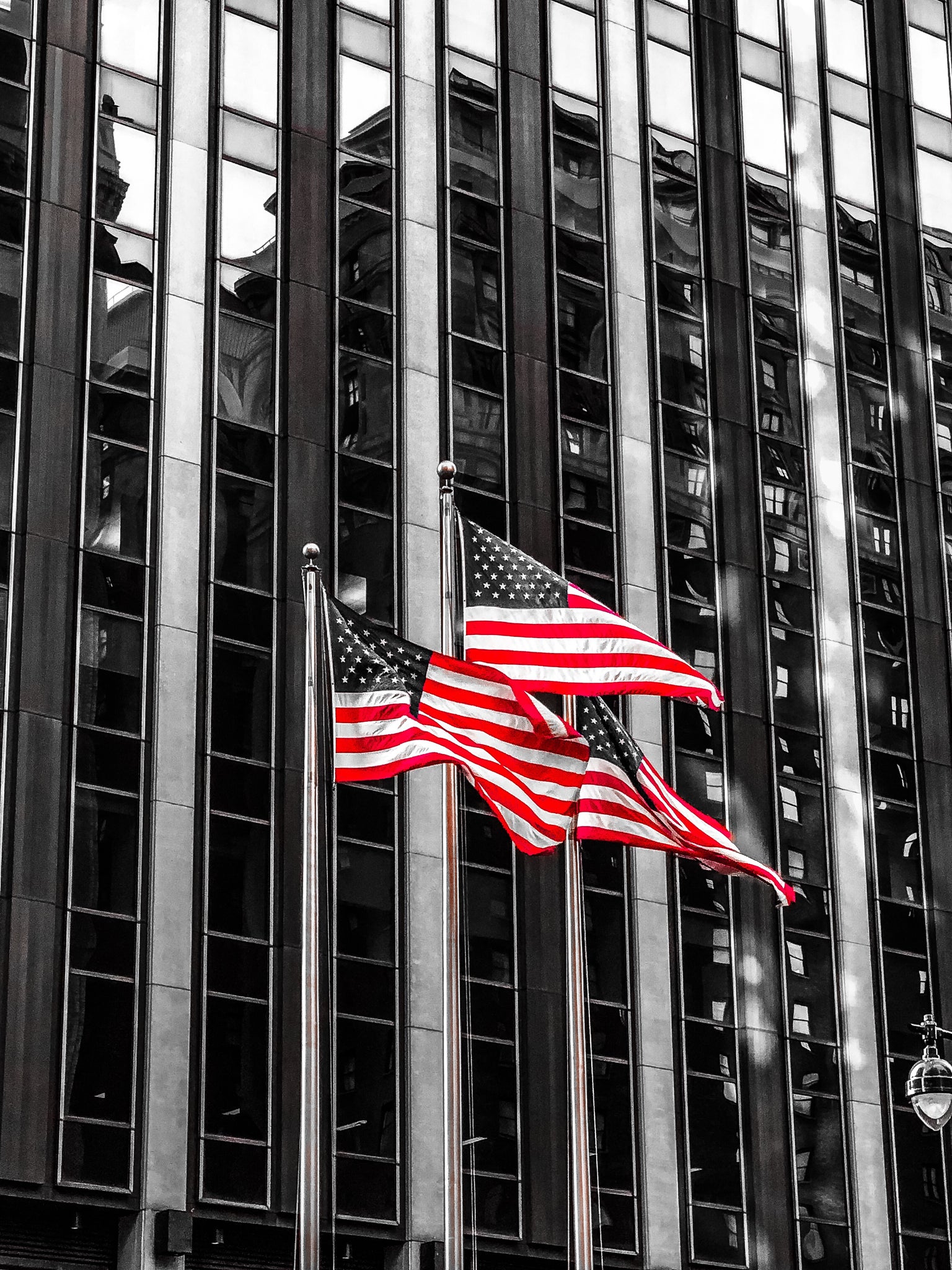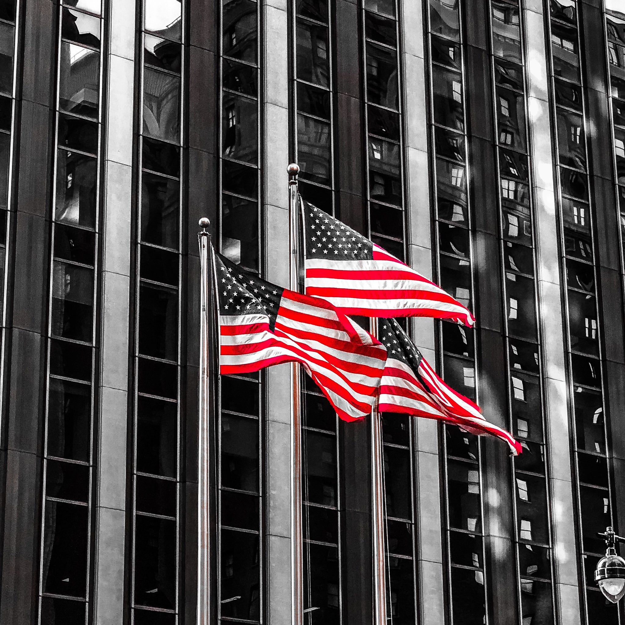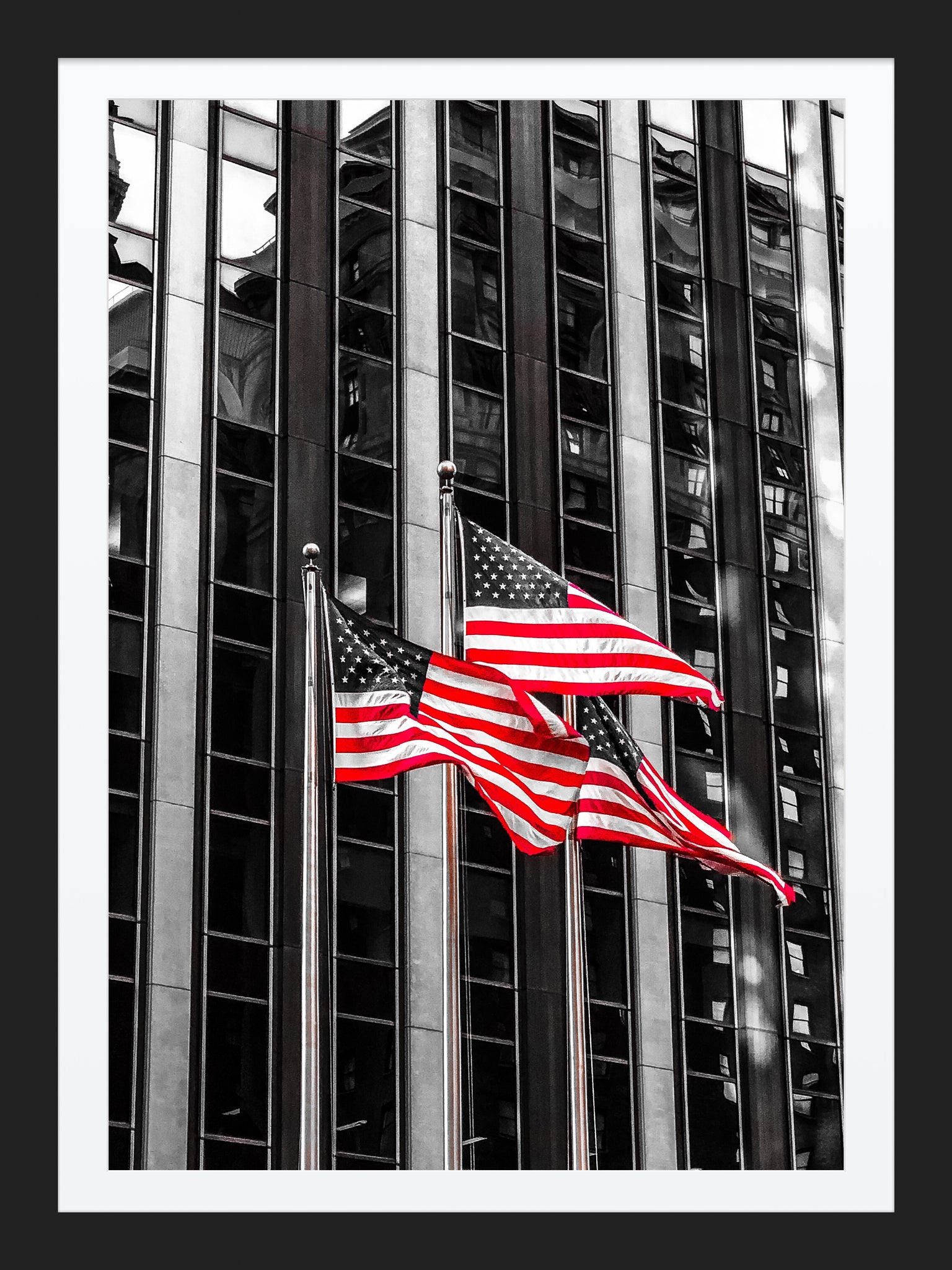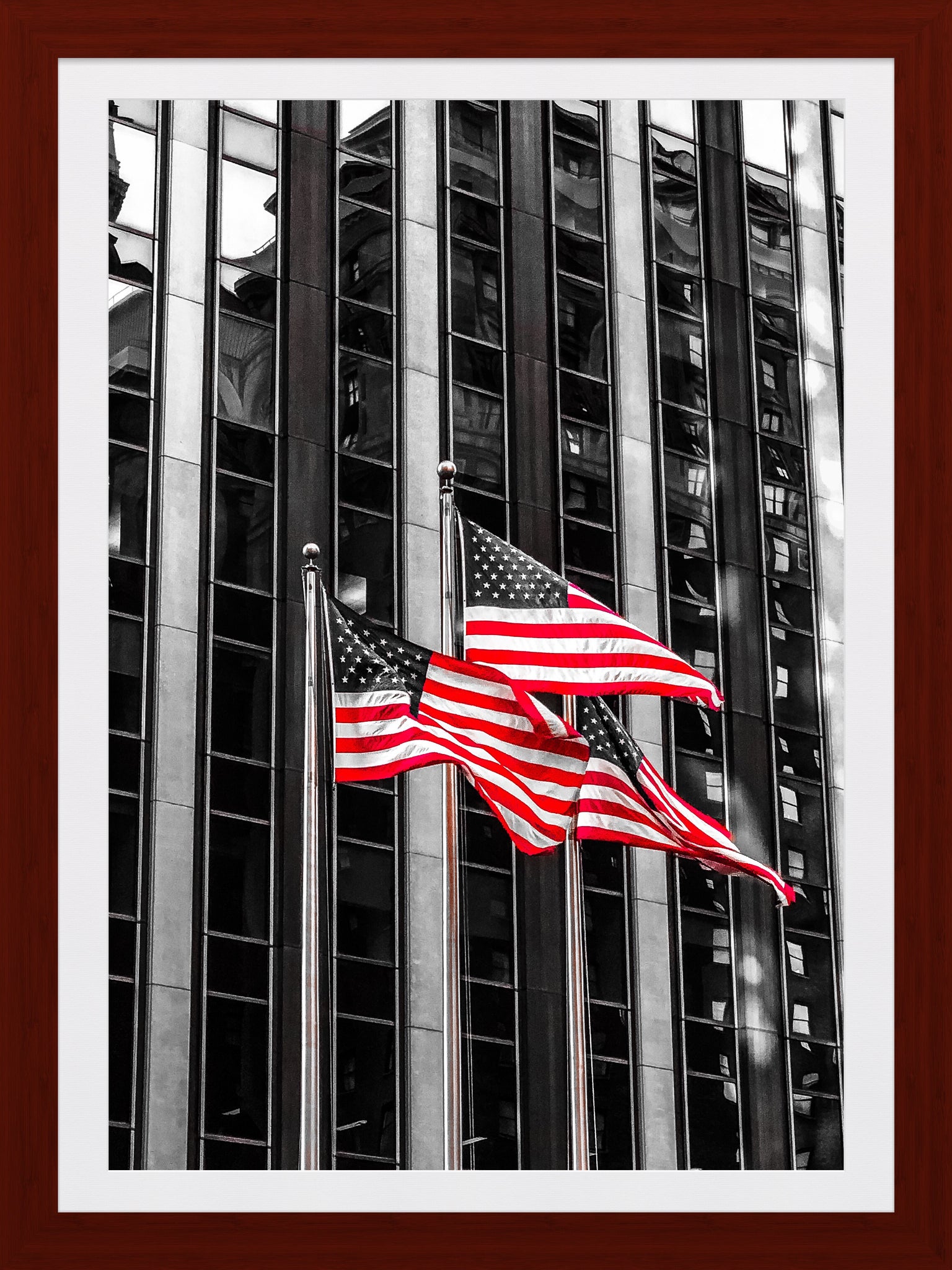 Enjoy this stunning picture of three American Flags in the air ahead of Madison Square Garden.  Perfect to display on your fireplace, fridge, or waiting room wall.
