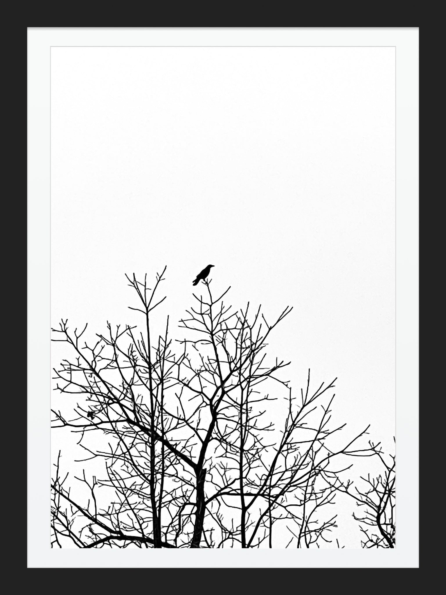 Just a simple black & white photo of a distant crow.  The bare branches are a nice touch.