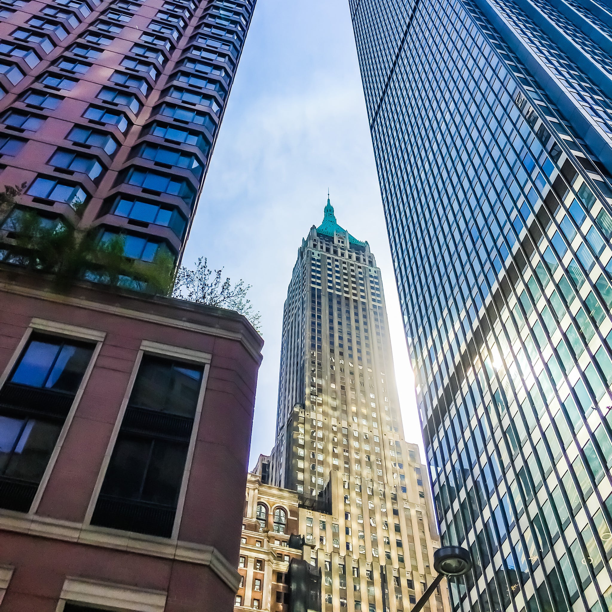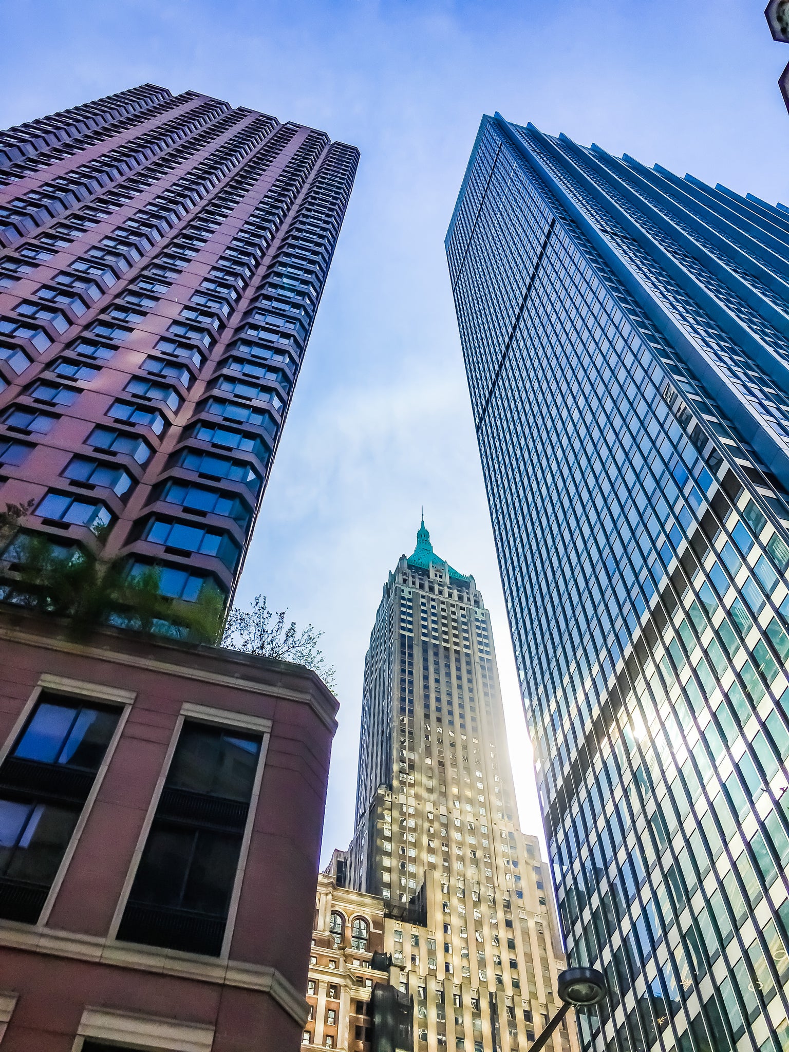 Great shot of Woolworth Building being in the middle of these two other buildings.
