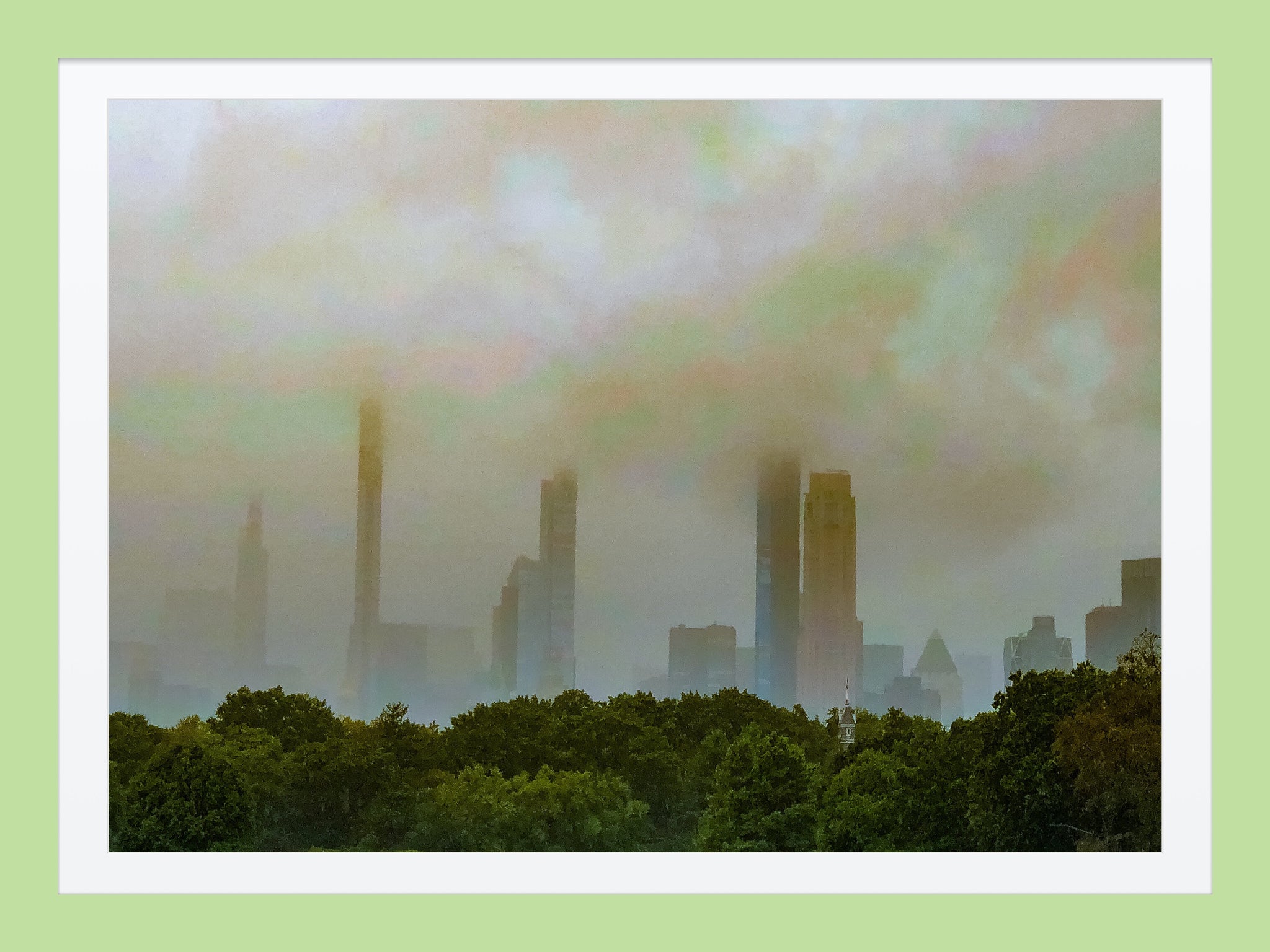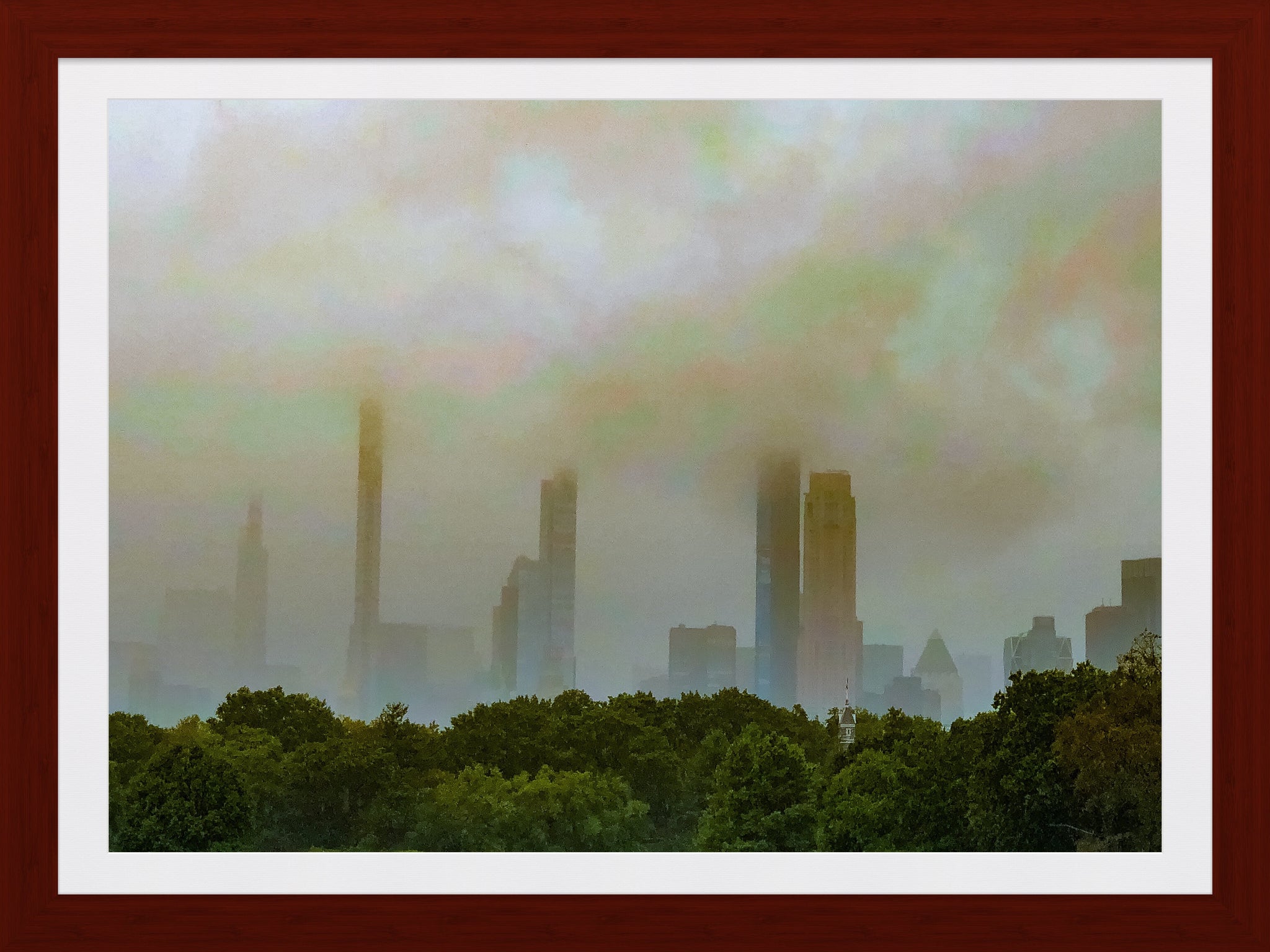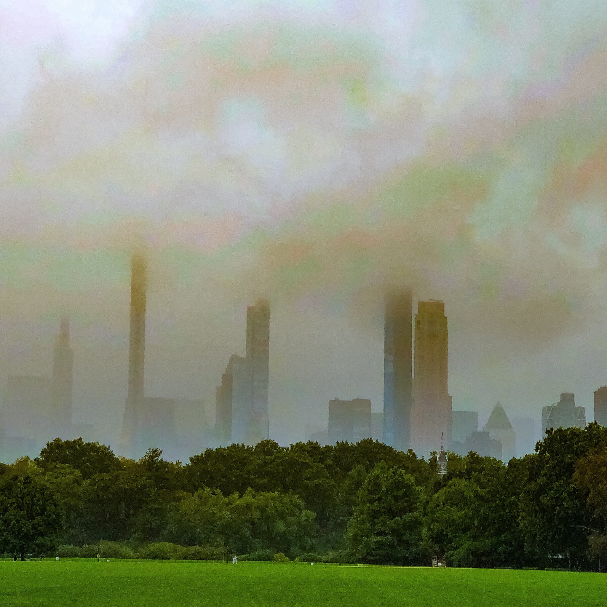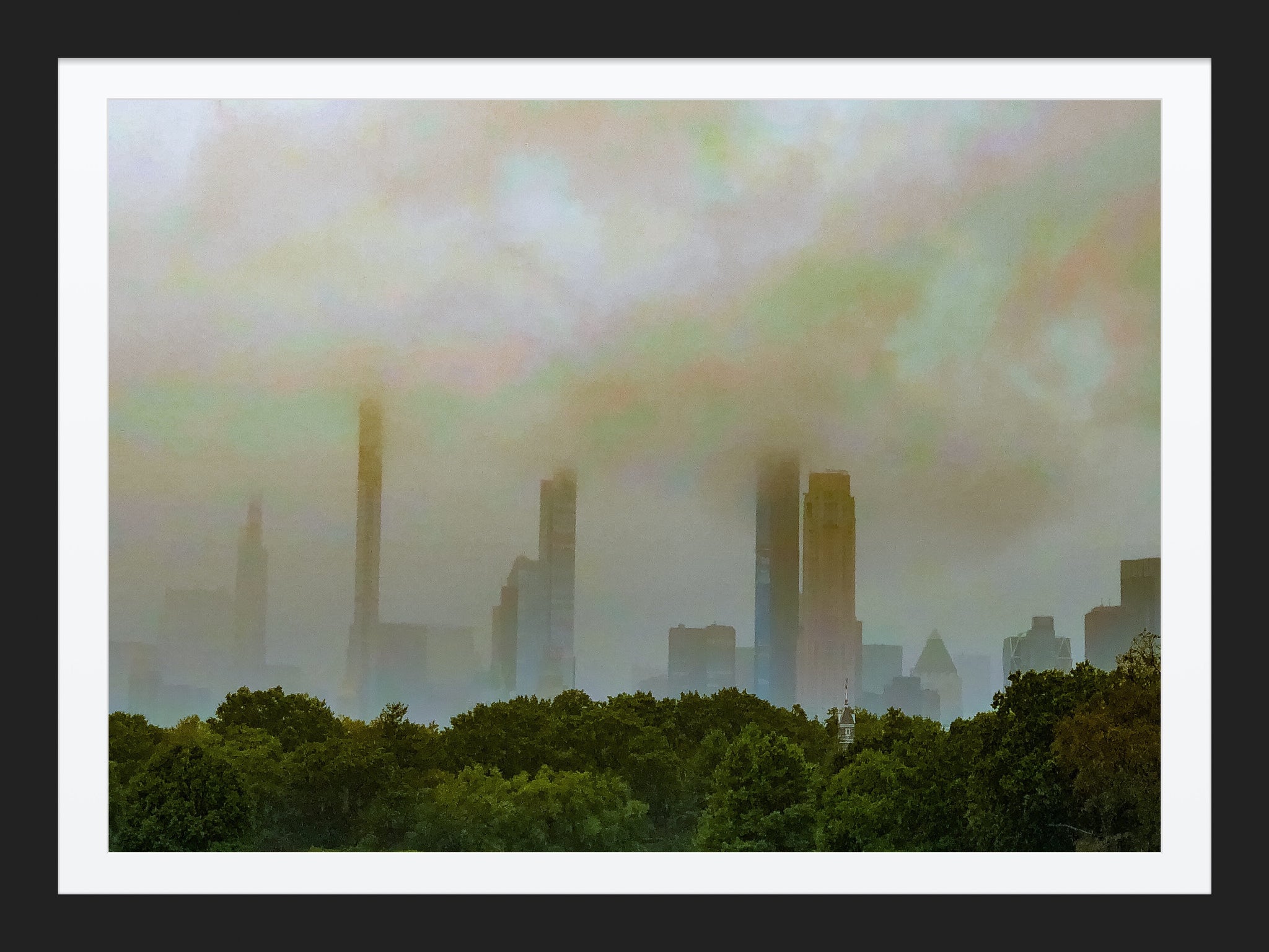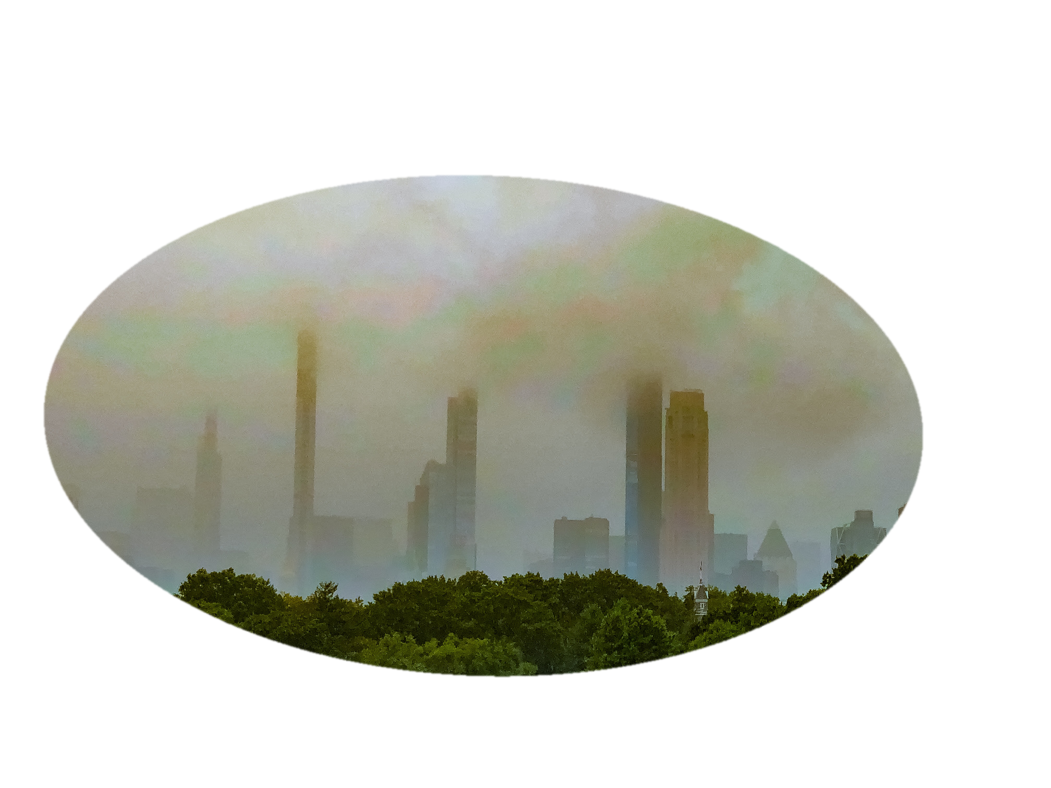 Looking at Central Park South, almost covered in a shroud of clouds.  Available in Metal Prints, oval and square fridge magnets.