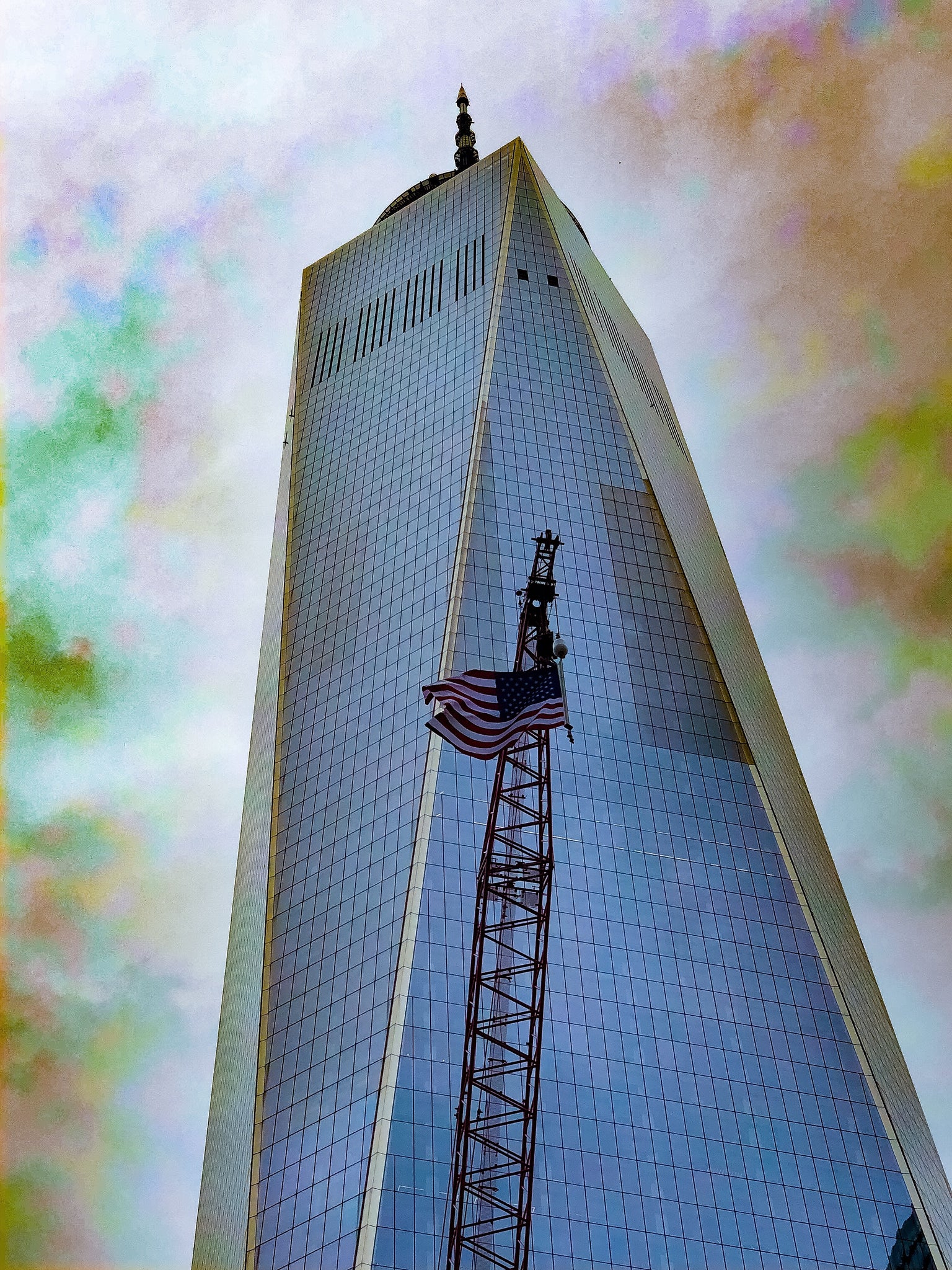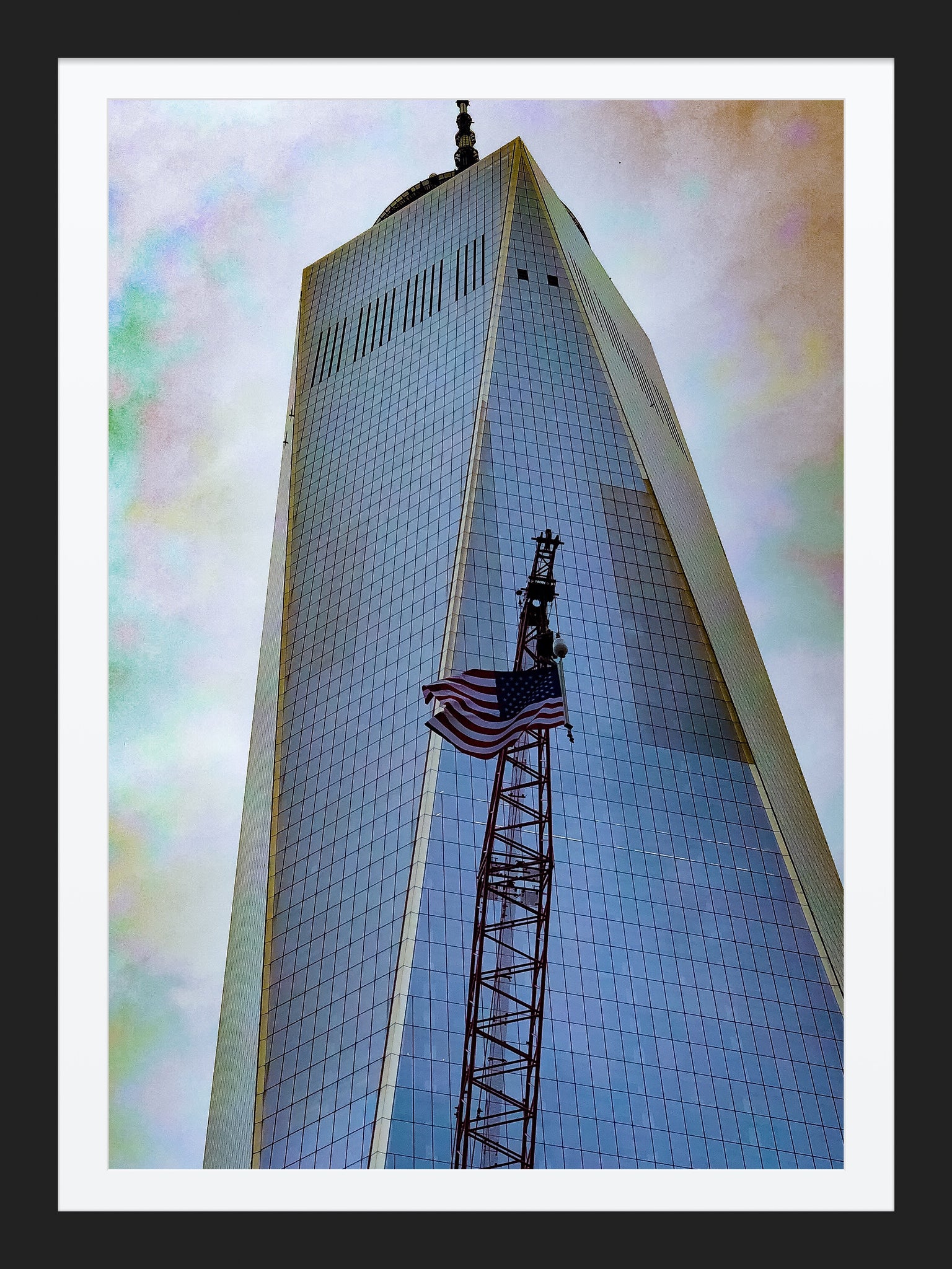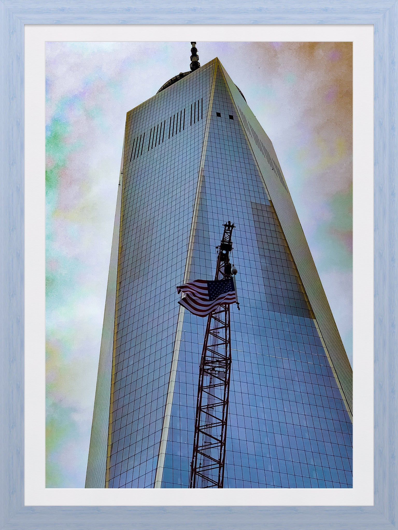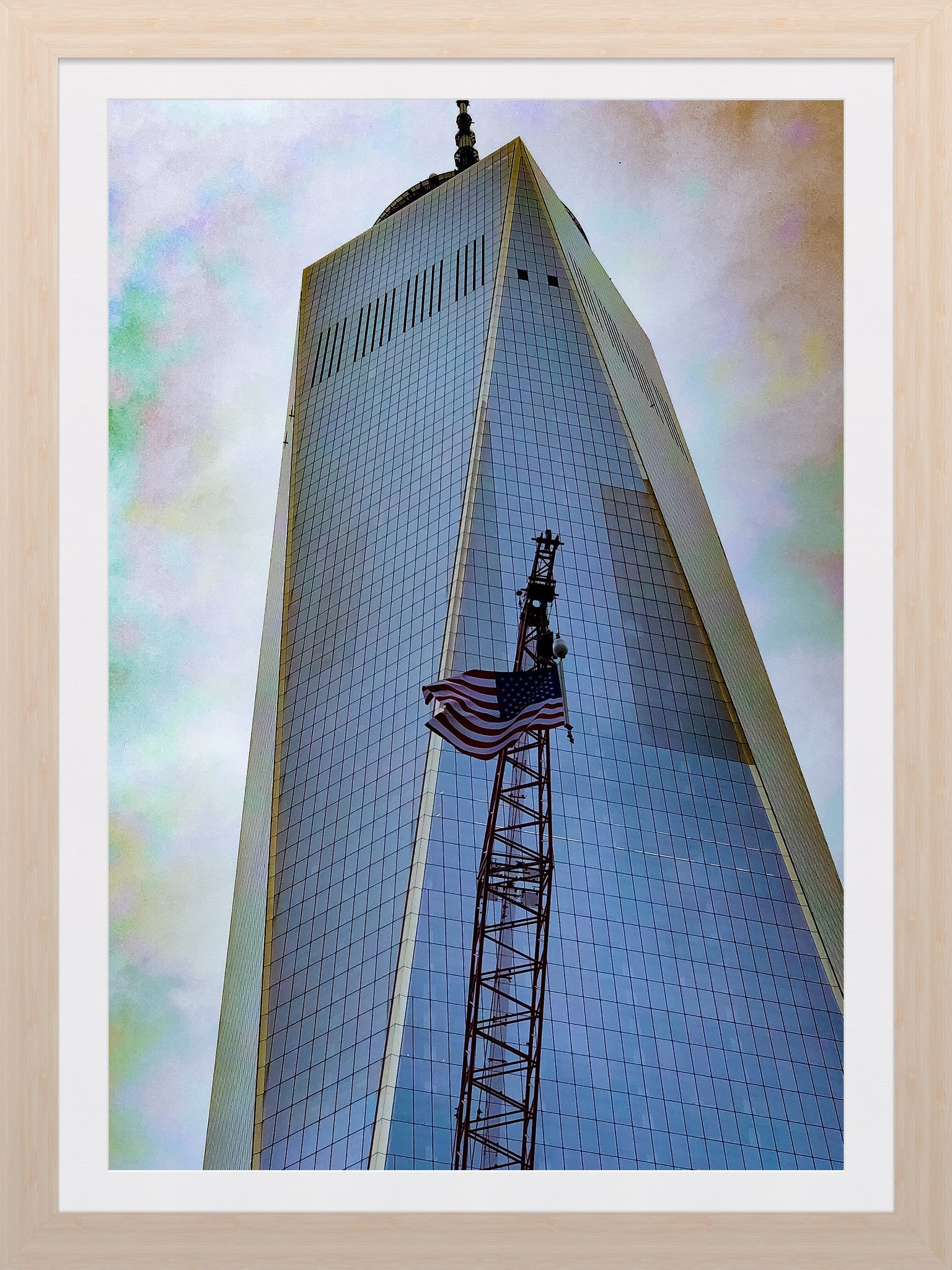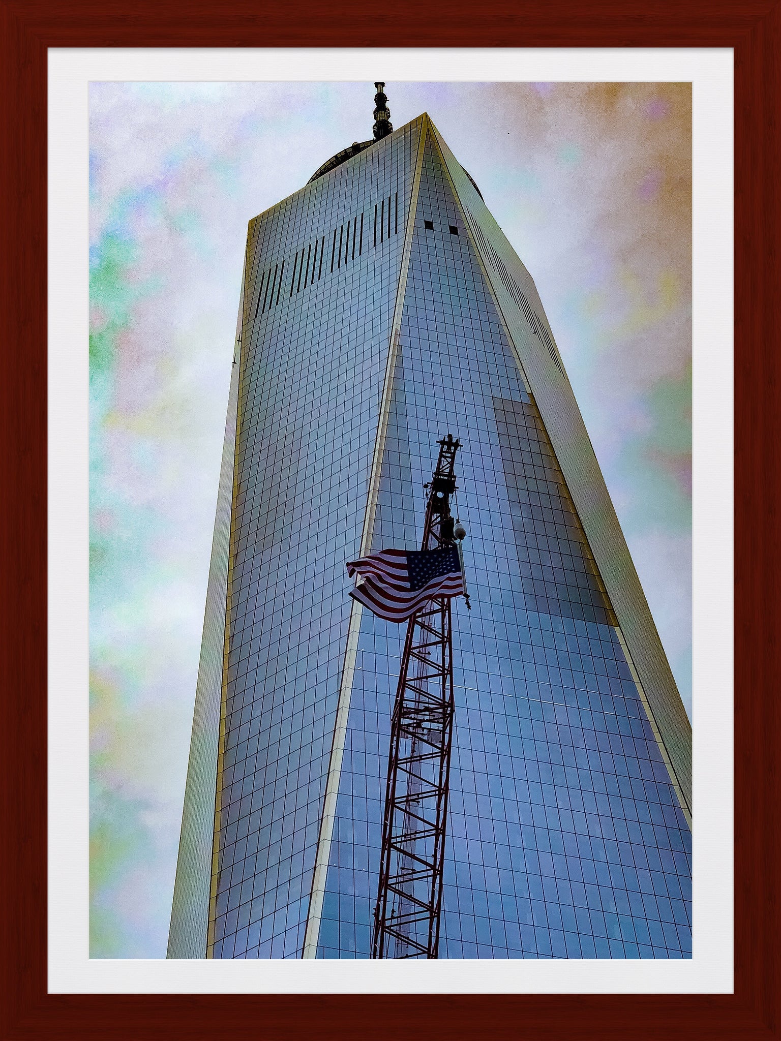 Beautiful shot of Old Glory with the Freedom Tower.  Great piece to hang on your wall in your home or office.