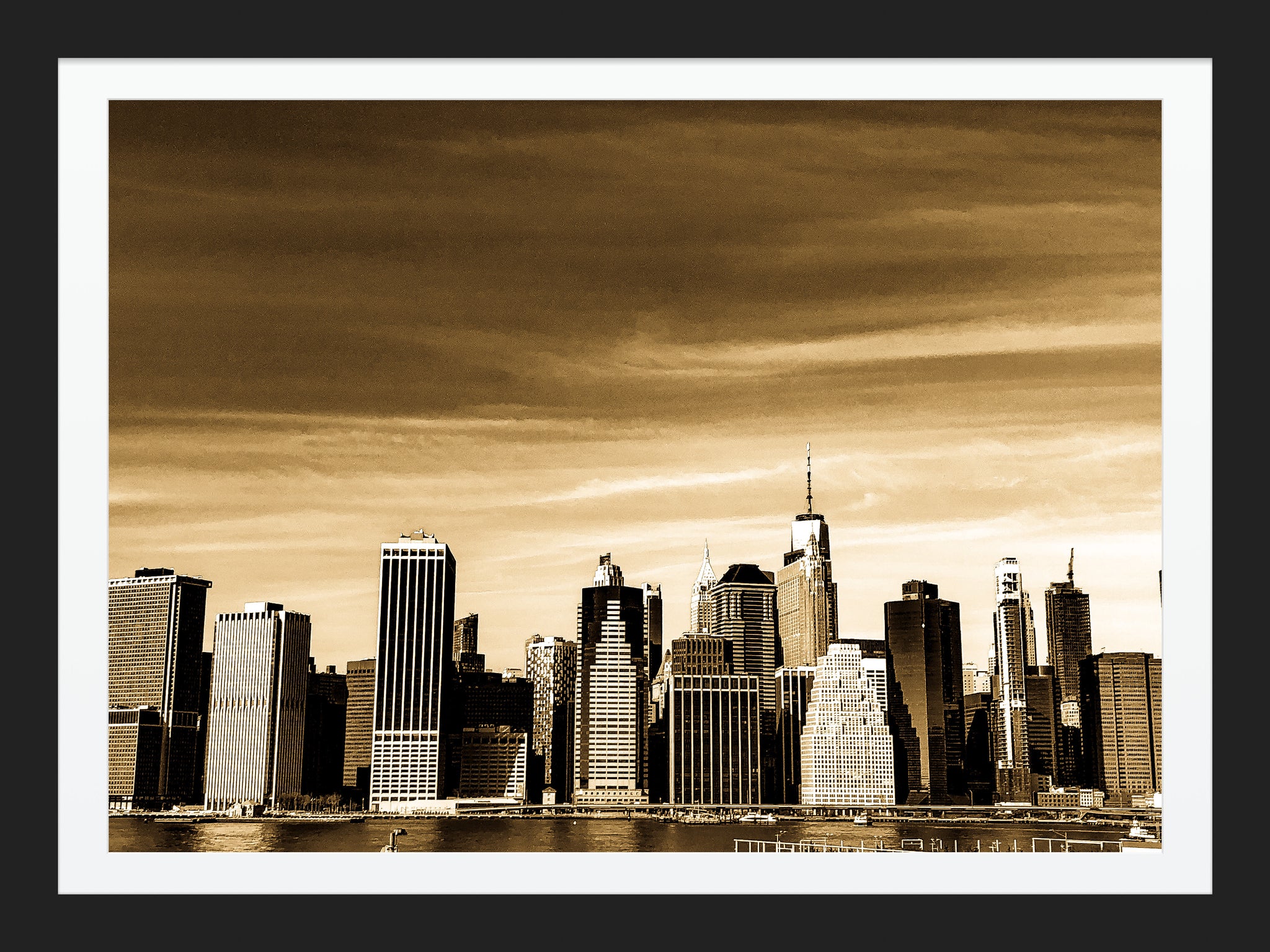 Spectacular shot of the Lower Manhattan skyline with a touch of sepia.  Makes a fantastic addition to any room in your home or office, or give as a gift.