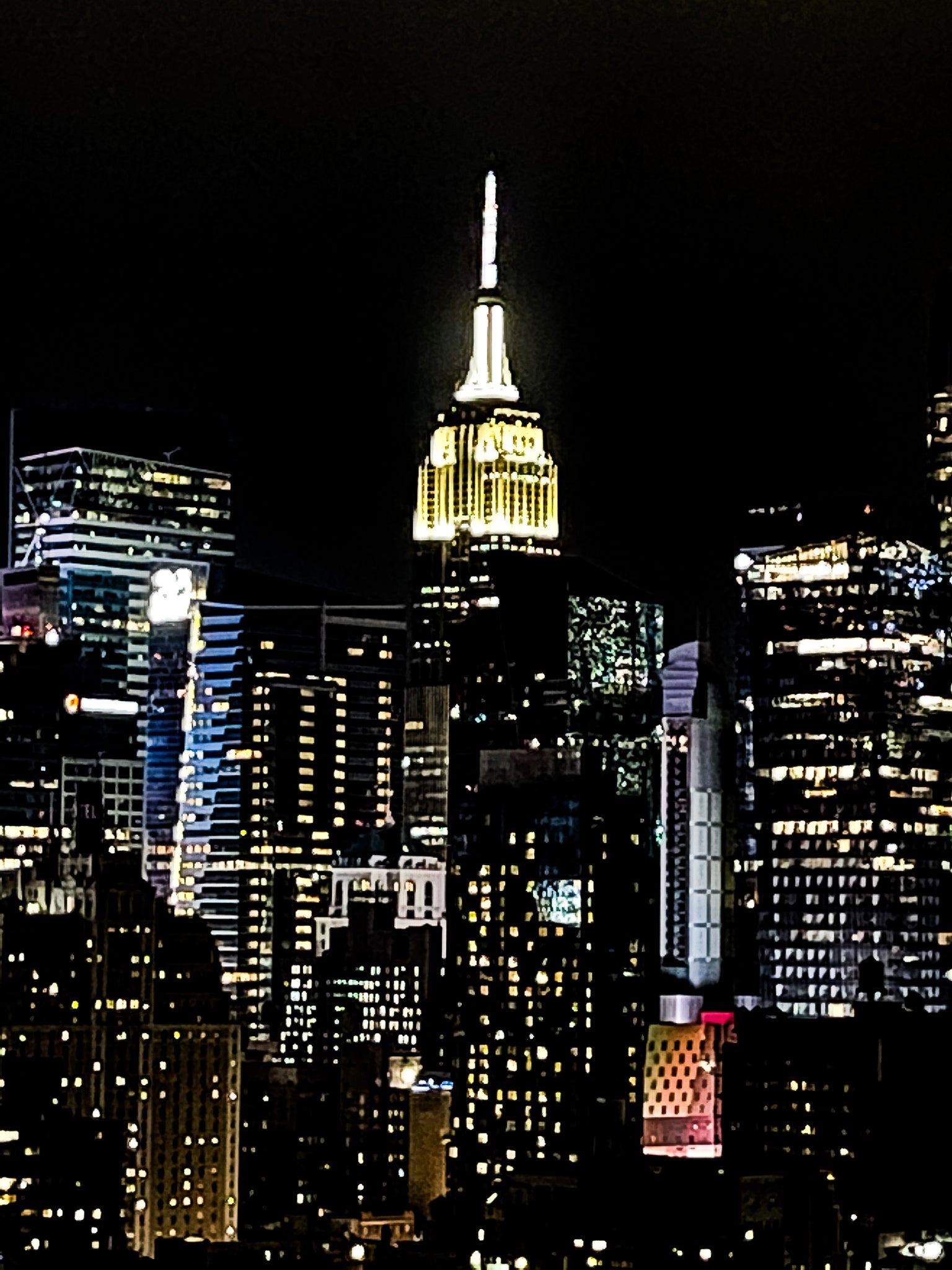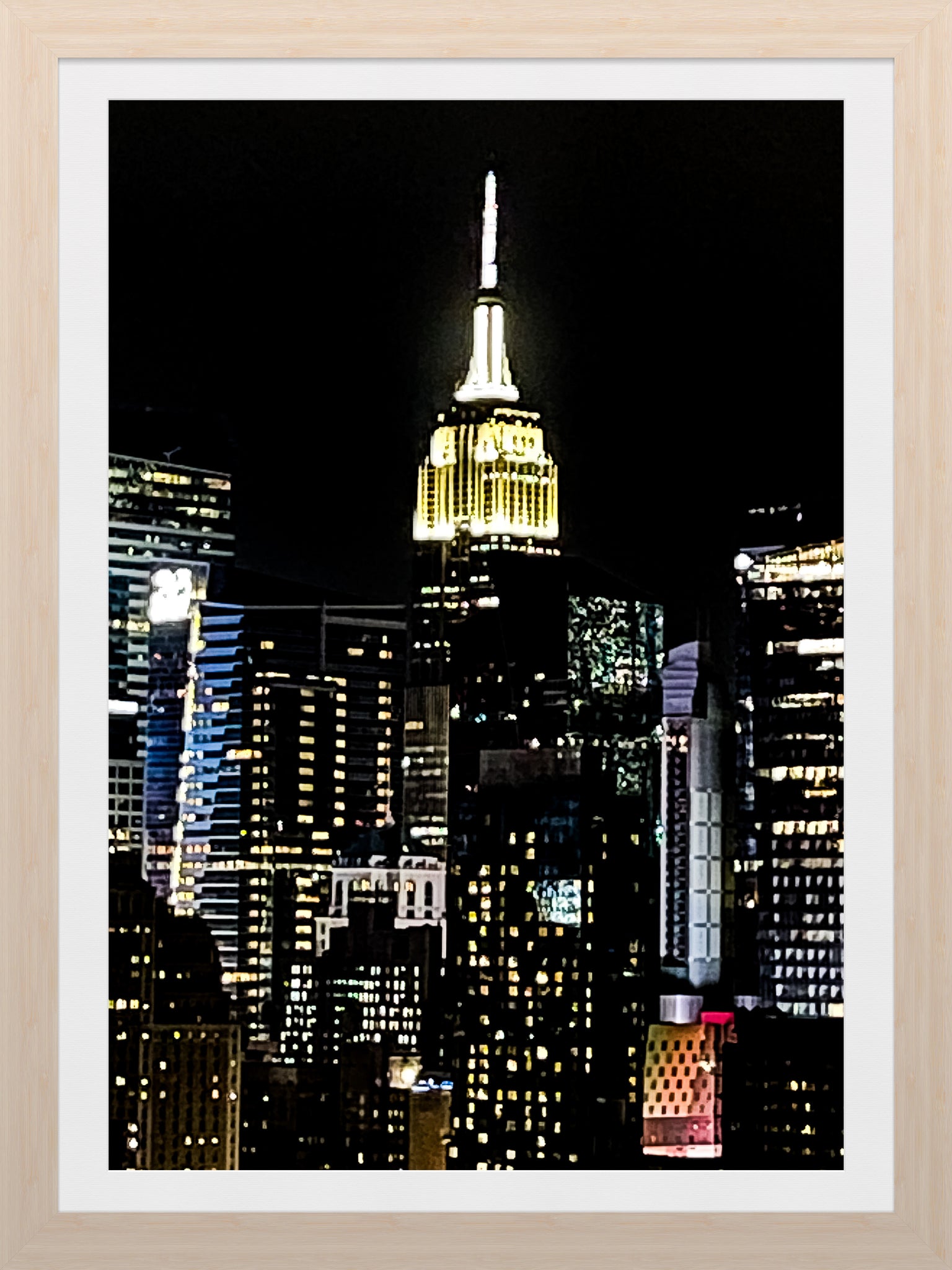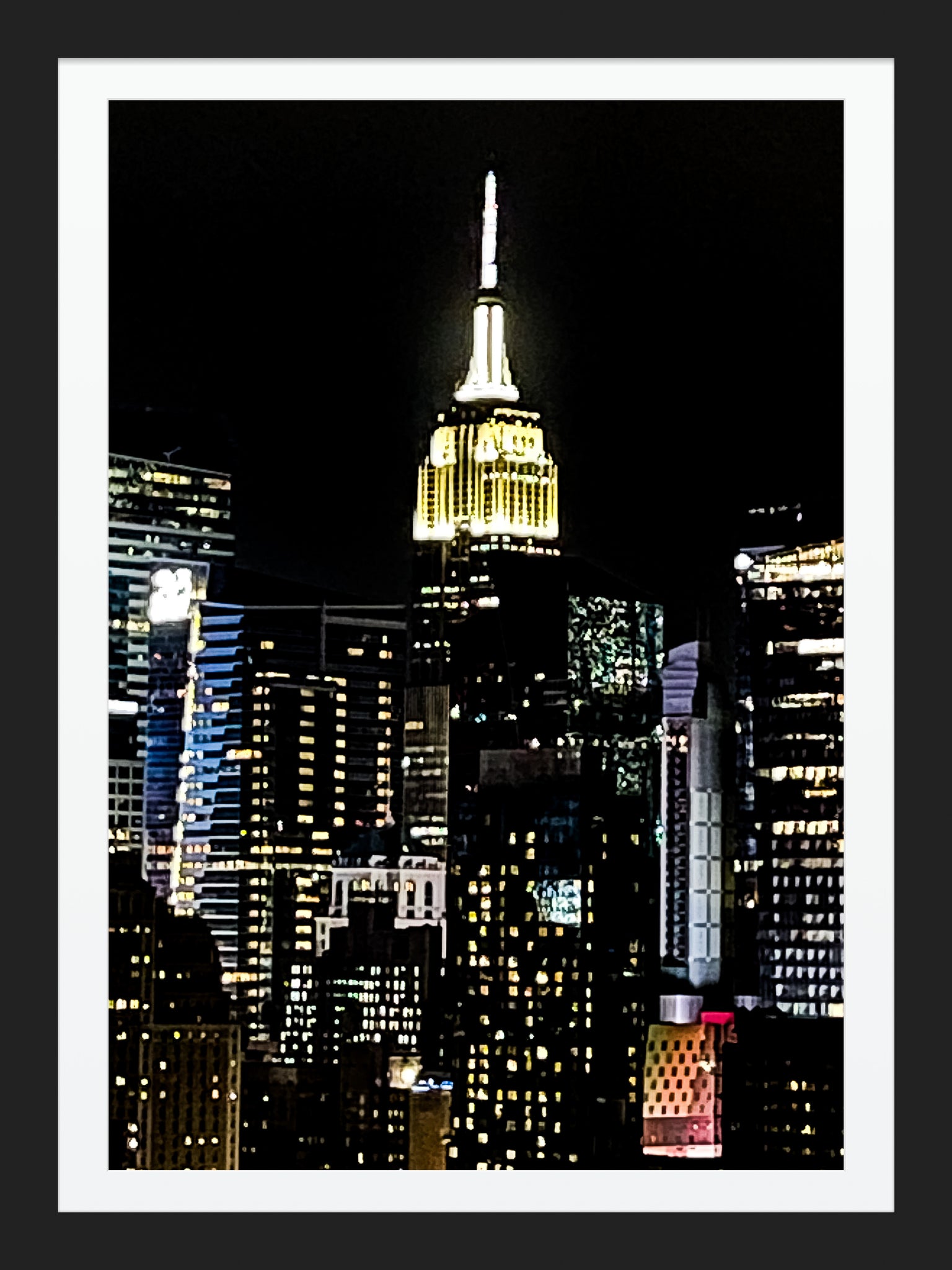 What a spectacular view of the Empire State Building and Lower Midtown of New York City from a rooftop in Hell's Kitchen, which will look great in your home or office.
