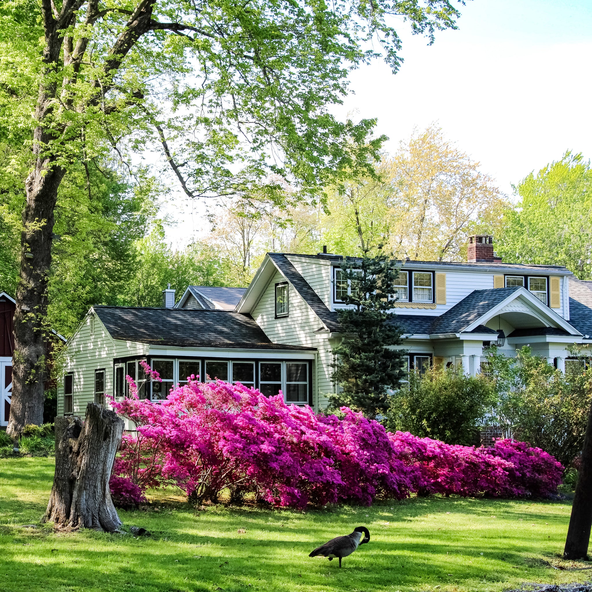 I love the streak of magenta flowers in this picture with the lone goose. This makes a great addition to any room in your home or office.