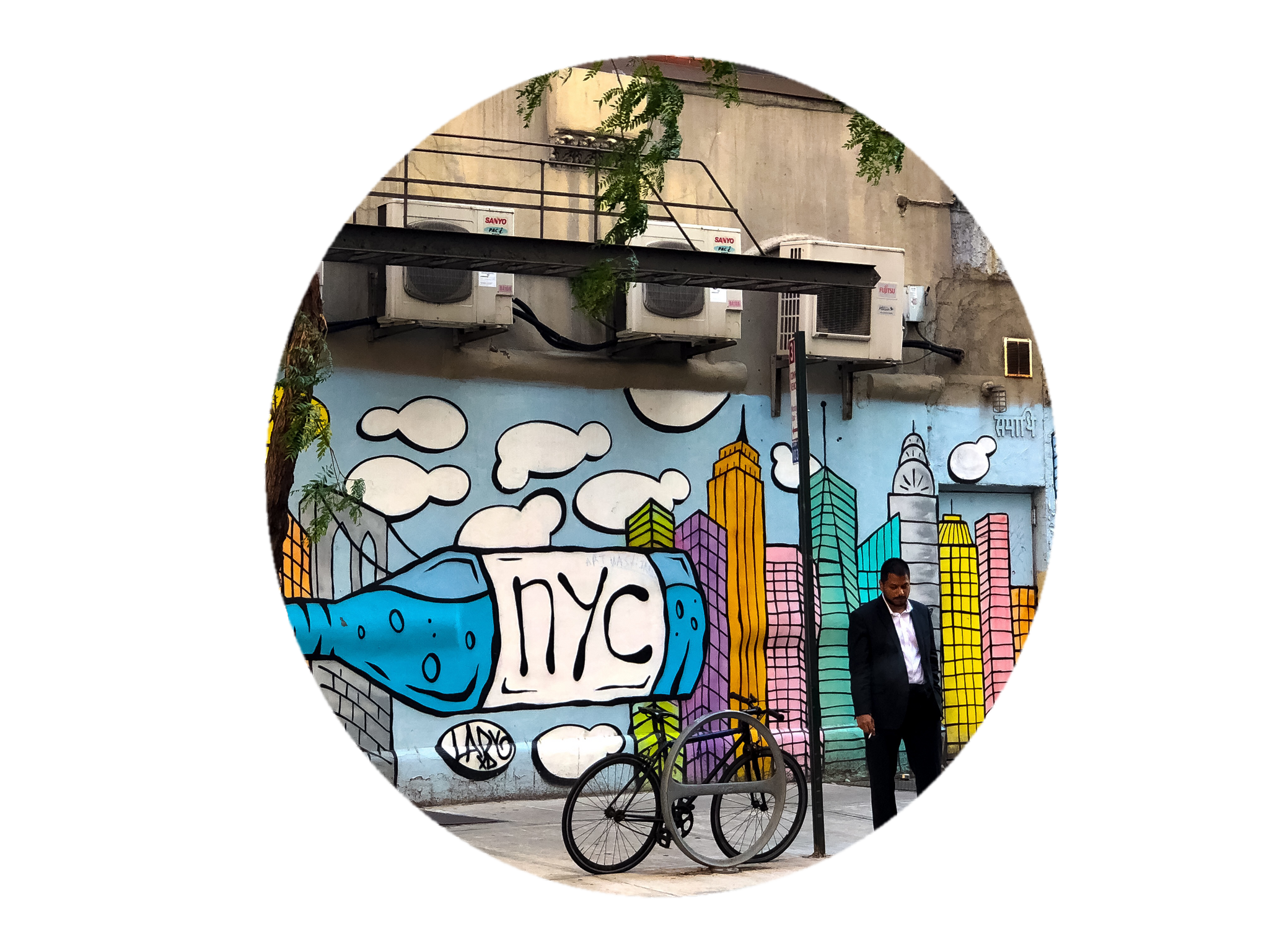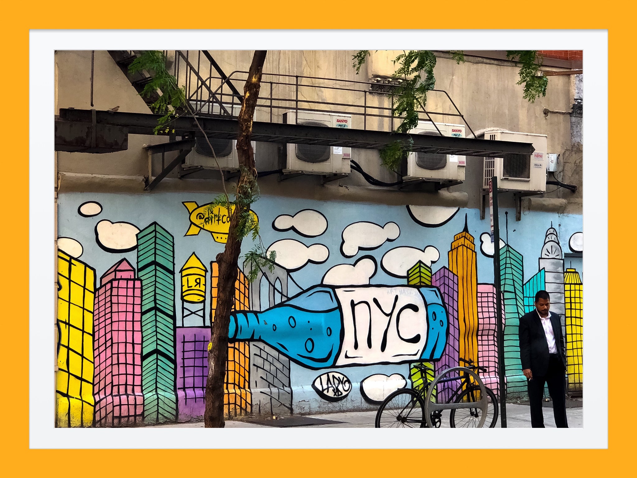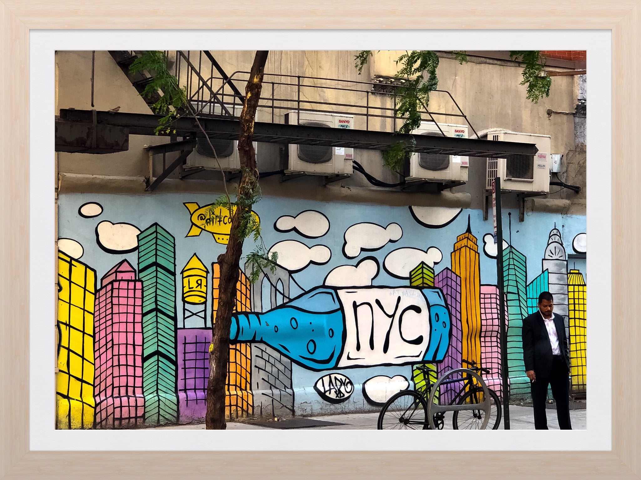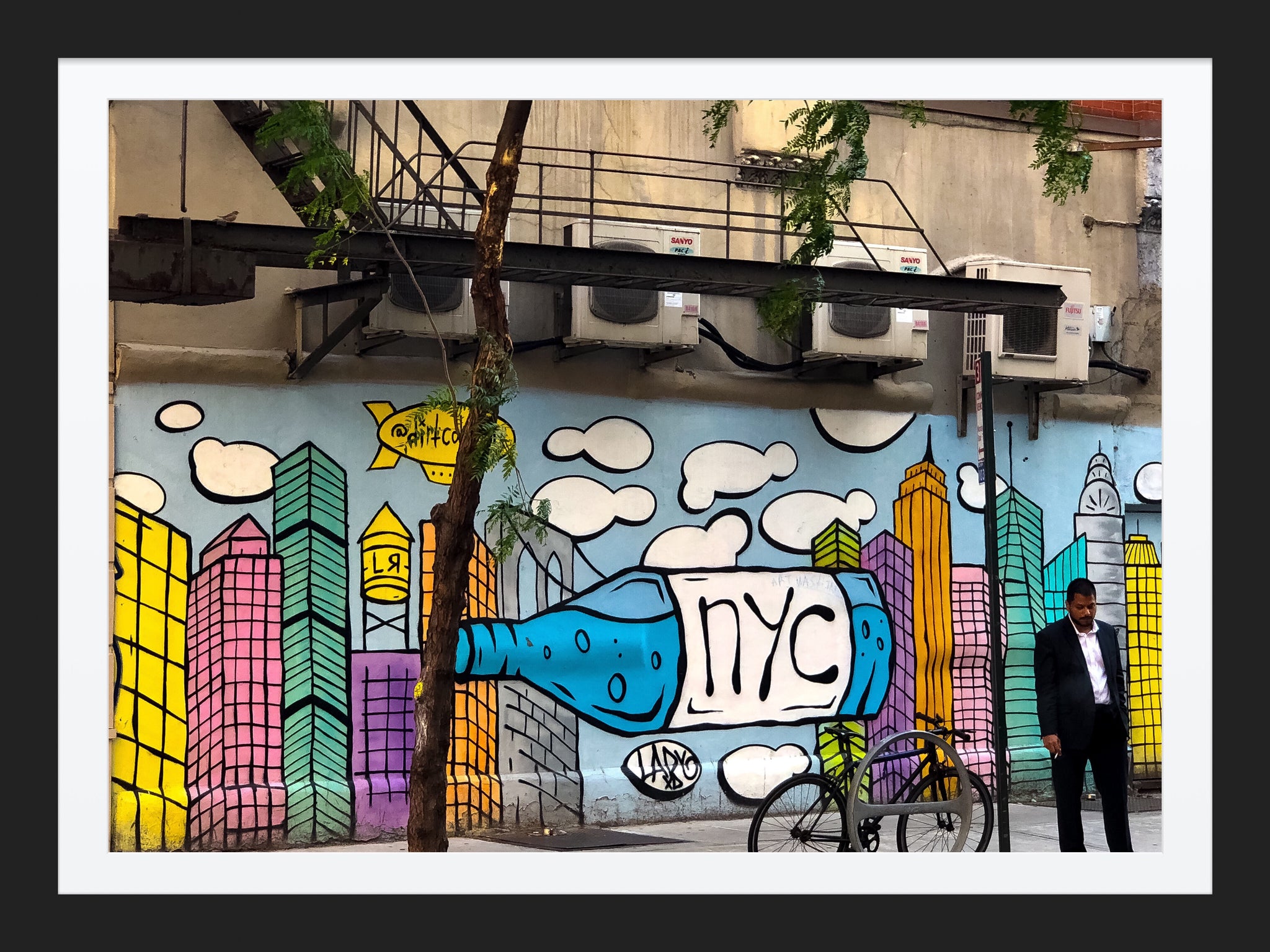 This is the artwork I truly appreciate.  The bike and the nonchalant man make a great touch.