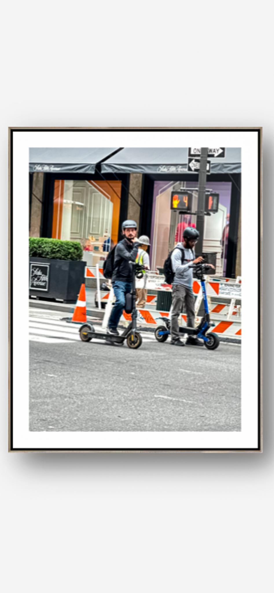 Took this random picture of two guys on scooters.  One is on his phone and the other deep in thought. This acrylic is sure to be a great addition to your home or office.