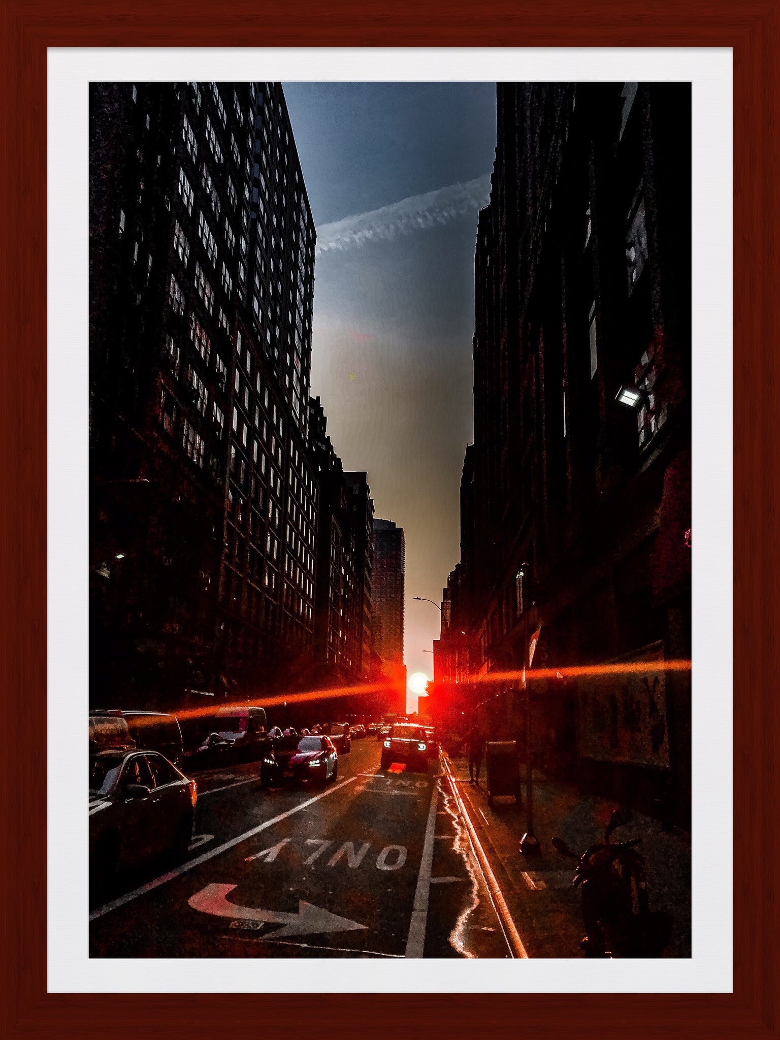 Great sunset shot in between the buildings of New York. Makes a great gift or display in your waiting room, lobby, meeting room, or your living room.